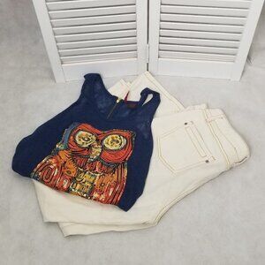 KIKIT Jeans Ivory/White Capris Size 12 Decorative Stitching 5 Pocket