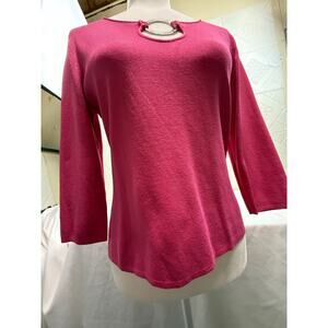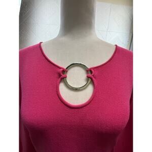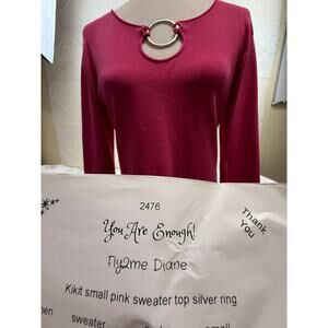 KIKIT Maurice Sasson Knit top Small Pink Silver ring sweater 3/4 sleeve