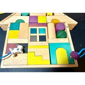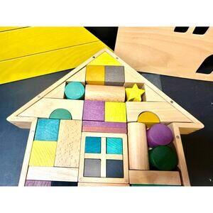 This doll-house shaped wooden block set has beautifully soft colors and consists of 41 pieces.