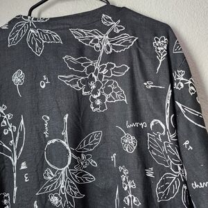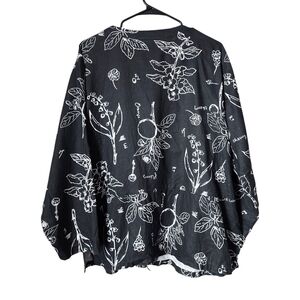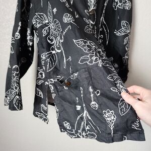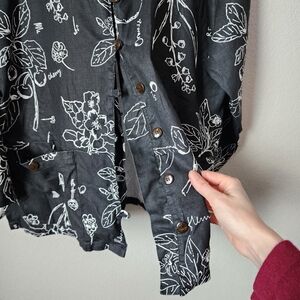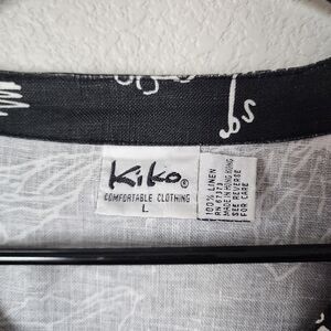 KIKO comfort clothing 100% linen top Black Floral button front lagenlook L