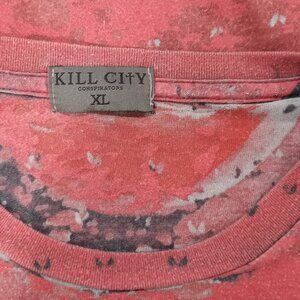 KILL CITY 100% COTTON SHEER RED/GREY PRINT SHORT SLEEVE T-SHIRT MEN SIZE XL