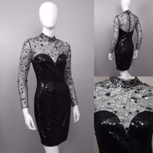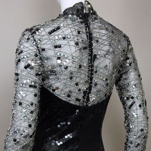KILLER 1980s NITELINE made of a stretchy poly, thoroughly embellished black sequin body and a GORGEOUS bodice,