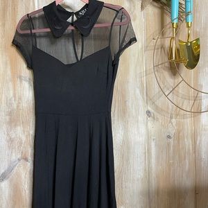 LITTLE BLACK KILLSTAR DRESS. Love the sheer that covers yet reveals your bosoms ^~^ I was a hair stylist so there are a minor speckles of bleach which can easily be removed and brought back to perfection using fabric dye!!