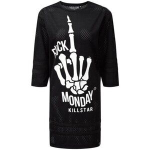 KILLSTAR “Fu€k Monday” Hockey Dress – Oversized Mesh w/ Skull Graphic Size L