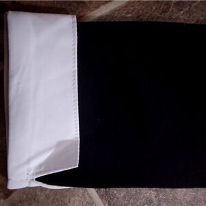 BLACK SHORT DRESS WITH WHITE COLLAR AND WHITE CUFFED SLEEVES