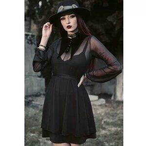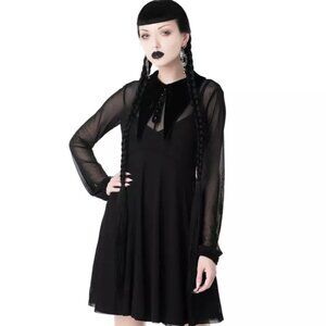 KILLSTAR Lily Of The Alley Goth Sheer Long Sleeve Collar Dress Size M/L