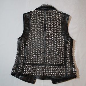 Rad faux leather vest with hundreds of mixed elements spikes and studs in soft A-grade PU Leather. Hand-crafted.