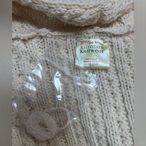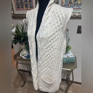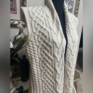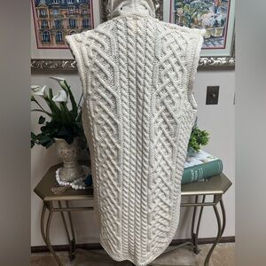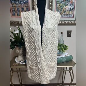 KILRONAN IRELAND KNITWEAR MERINO WOOL CREAM CABLE KNIT OPEN FRONT VEST SZ S-L