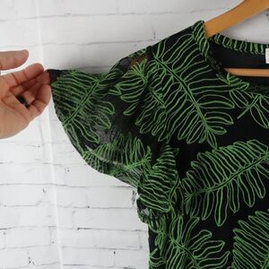 KIM & CAMI BLACK WITH GREEN EMBROIDERED LEAF DESIGN SHORT SLEEVE TOP SIZE MEDIUM