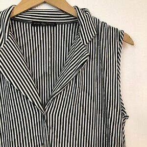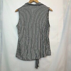 KIM & CAMI Black White Stripe Sleeveless Button Down Tie Knot Blouse Tank Top S