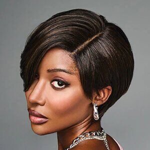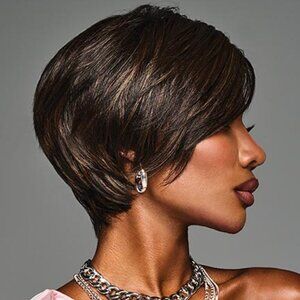 New in box with tags attached. Jayla is an asymmetrical layered style with a sweep of bangs to the right slightly longer side and tapering in the back to the nape. Roomy, average size cap with a temple-to-temple SHEER LACE FRONT and a narrow MONOFILAMENT PART that extends to the crown. Velvet lined ear tabs. Velvet lined extended nape. Nape adjusters for a personalized fit. Open wefted back and sides. Shade MC4/35SS Sangria is a dark-rooted deep brown with fiery red highlights. Beautiful and very striking shade. MSRP $318.00 USD