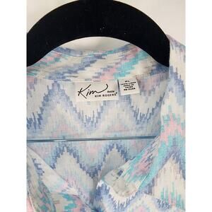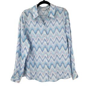 KIM ROGERS 100% Linen Blue Chevron Button Down Shirt Womens Petite Large Beach