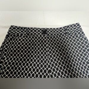 KIM ROGERS BLACK AND WHITE PATTERNED CAPRI’S. SIZE 10 COTTON/SPANDEX