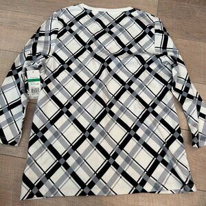 KIM ROGERS BLACK AND WHITE WOMENS 3/4 SLEEVE SHIRT NEW PETITE LARGE