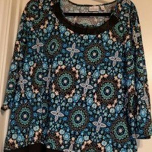KIM ROGERS Blouse - 3X - Multi-Blues - 3/4 Sleeves