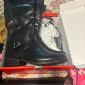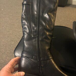 KIM ROGERS LADIES SIZE 9.5 BLACK BOOTS.COMFORTABLE & FLEXIBLE LIKE WALKING ON AIR. HAS STRETCH PANELS. BUCKLES