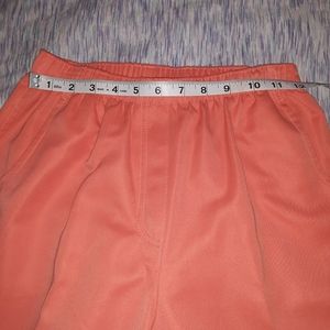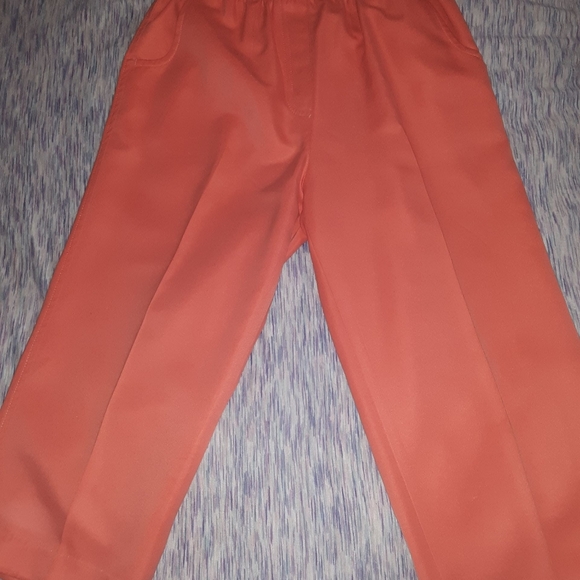 Kim Rogers Peach Capris. Two pockets in the front. Elastic waistband. 100% Polyester. Size 6P. Measurements in the photos.