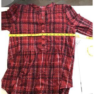 KIM ROGERS- WOMEN RED/WHITE BUTTON FRONT 3/4 SLEEVE SHIRT SIZE SMALL