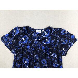 KIM ROGERS - WOMEN'S BLUE FLORAL PRINT SHORT SLEEVE STRETCH KNIT TOP - SIZE PM