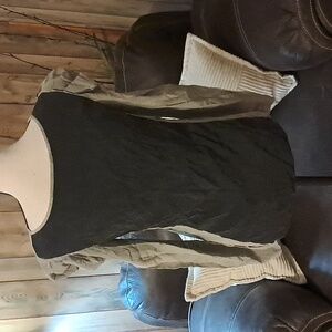 KIMBERLY TAYLOR Black and Gray Rusched Long Sleeve 100% Silk Top Size S