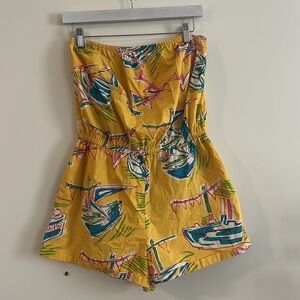 KIMCHI BLUE Palm Beach Cruise Playsuit Romper Yellow Strapless sz L spring break