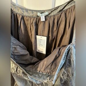 KIMCHI BLUE UO 7 Washable Skater Skirt US 10 Silver Green Lurex LACE Velvet NEW