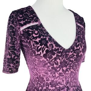 KIMCHI BLUE URBAN OUTFITTERS Floral Burnout Velvet Skater Dress in Plum Purple S