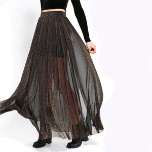 KIMCHI BLUE black mesh glitter sparkle maxi skirt size small