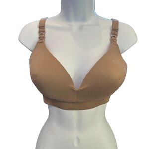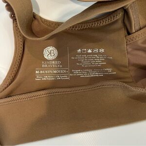 KINDRED BRAVELY Minimalist Hands-Free Pumping & Nursing Bra. Patented design featuring EasyClip® so you can wear the same bra all day for pumping, nursing, or both at the same time. Molded cups and flattering plunge cut. Adjustable straps that convert from a traditional back to a racerback (for optimal support, make sure to tighten straps while pumping). Fits all standard pump flanges, including Medela, Spectra, Lansinoh, Ameda, Hygeia, Philips Avent, Motif, and Evenflo, as well as wearable pumps like Willow, Elvie, and Freemie. Size "M Busty".