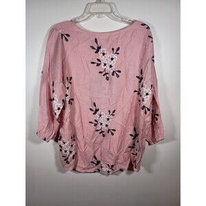KINDRED Top Pink Floral Embroidered Boho Cottage Plus Size 2X
