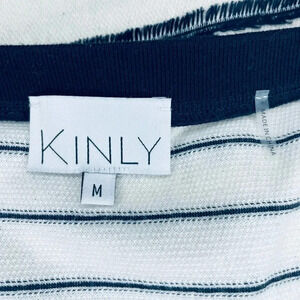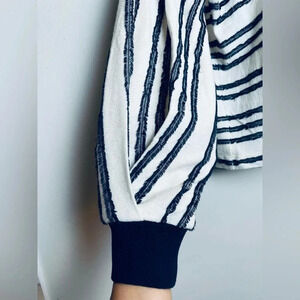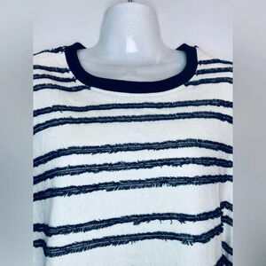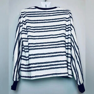 KINLY Cream Navy Blue Stripe Crop Sweater Women Size Medium