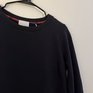 Kinly Women’s Dress black Combo Drop Waist Terry Pleated Contrast Leopard Skirt Long Sleeve Crew Neck Distressed Rib Trim Unlined Sweatshirt Material Super Soft