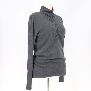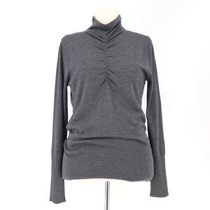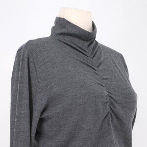 KINROSS CASHMERE Ruched Turtleneck Sweater Silk Merino Wool Dark Gray Size XL