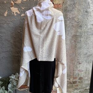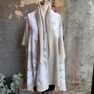 NWT KINROSS CASHMERE Floral Intarsia Travel Wrap in Mushroom/pearl.