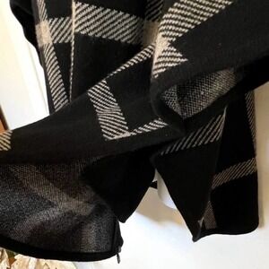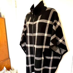 KINROSS LUXE 100% CASHMERE BLACK & SUEDE PLAID ZIP MOCK PONCHO OS ONE SIZE