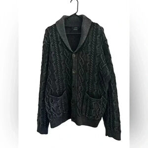 KINROSS STONEWASHED ZIP FRONT CARDIGAN, CHUNKY CABLE GRANDPA