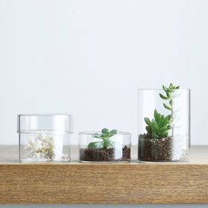 This is the 4x2 Schale glass case that can be used for small storage in any room of the home, the creative display of special items or to make sleek terrariums, as shown. The possibilities are limited only by your imagination! Heat tempered glass. Simple and beautiful.