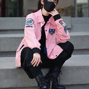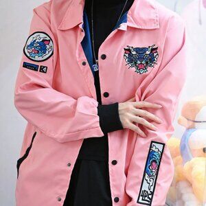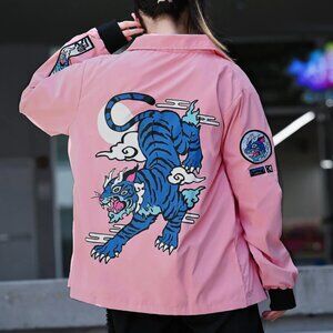 Original TIGER design by KINWA for LUNAR NEW YEAR 2022! Silkscreened on a pink windbreaker jacket. Comes embellished with TIGER embroidery patches.