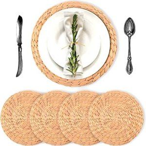 Kilofly Natural Hyacinth Weave Placement Round Braided Rattan Tablemats