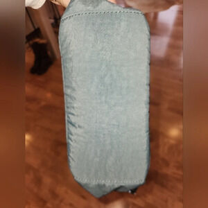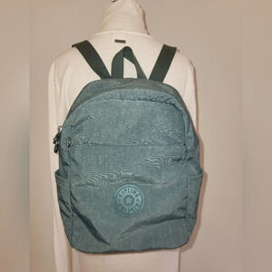 Kipling medium sized backpack in a very pretty sage blue color. It's in very good condition except the inside pocket had a small black dot. There are 3 pockets on exterior and 3 on interior. Both straps are adjustable and there's a hold strap on top. Height: 13" Width: 11.5"