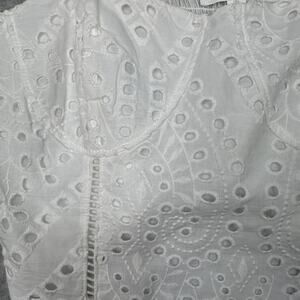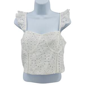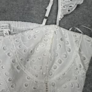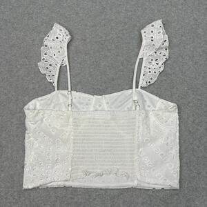 KIRIOUS Eyelet Lace Ruffle Sleeves Bustier Crop Top WMNS L White Eyelet Smocked