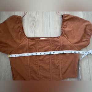 This elegant brown puff sleeve top is perfect for any occasion. Its stylish design and comfortable fit make it a must-have in your wardrobe.