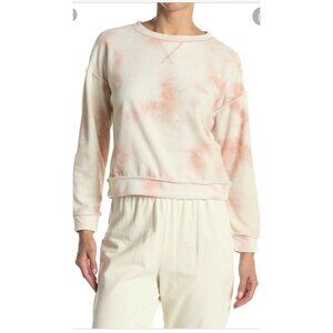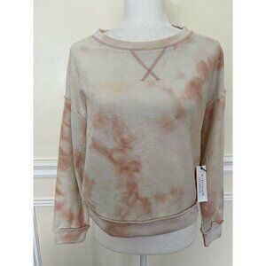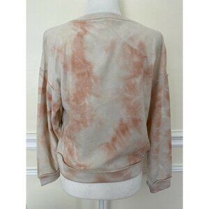 A reverse stitch detail and tie dye print adds a trendy twist to a classic crew neck sweatshirt. Crew neck. Long sleeves. Slips on over head. Tie dye print. Reverse stitch detail. Banded neck, cuffs, and hem. Knit construction. Approx. 21" length (size S)