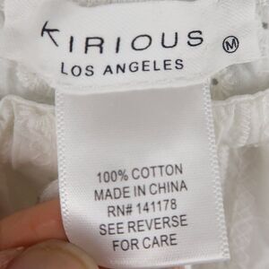 WHITE OFF THE SHOULDER 1/2 SLEEVE ROUND NECK COTTON CROP TOP WITH PINK FLOARAL EMBROIDERY SIZE SMALL BY KIRIOUS LOS ANGELES PRE OWNED LIKE NEW CONDITION