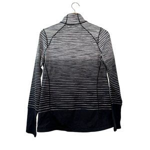 KIRKLAND SIGNATURE LADIES' QUARTER ZIP, 4 WAY STRETCH FABRIC, MOISTURE-WICKING FABRIC, REFLECTIVE DETAOL ON FRONT ZIPPER, THUMBLHOLE AT CUFF. 100% POLYESTER.