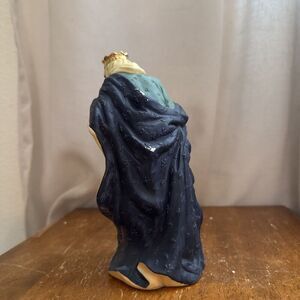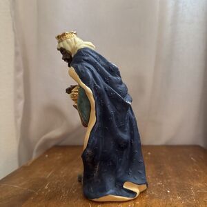 This Kirkland Signature nativity set replacement piece features a Wiseman Christmas figure from the year 1999. Made of porcelain, this vintage item stands at 8.5 inches tall and is part of the KIRKLAND SIGNATURE collection. The multicolored figure is intricately designed with an all-over pattern, depicting the Wiseman character in a small size suitable for adult collectors. Ideal for holiday displays, this original piece from the franchise makes a meaningful addition to any nativity scene.