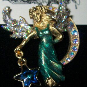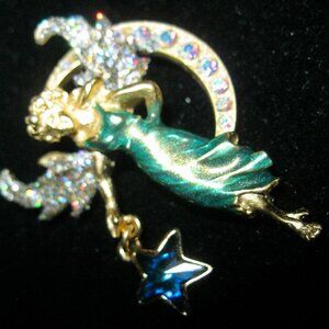 KIRKS FOLLY NEW OLD STOCK SIGNED FAIRY W/CRESCENT MOON AND BLUE STAR BROOCH SALE