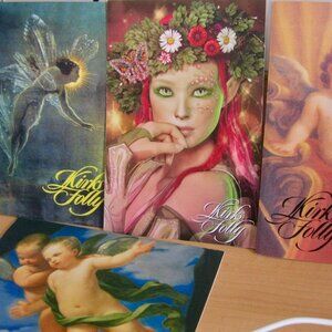 10/9/25 NOW ON SALE...KIRKS FOLLY..."ROMANCE CARDS FOR FORGET ME NOT BOXES AND MOON DREAMER SERIES" ... These are available to add to purchases of some of your Kirks Folly treasures. All 5 together for one price. These Romance Cards are perfect to include when you sell a Kirks Folly item. The post card (last photo shown alone) is an announcement for a factory outlet sale (which they no longer have). The face on this one is stunning and dramatic. I adore this one and have only my copy after this one sells. These are all in perfect condition. They will be packaged with a shipping envelope with cardboard to keep them flat.