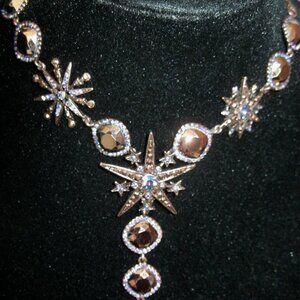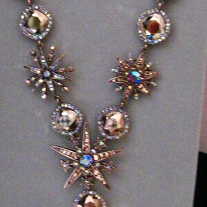PRICE REDUCED 10/18/25..."KIRKS FOLLY STUNNING STARDUST MEMORIES NECKLACE-CONVERTIBLE-NEW AND GORGEOUS!" This wonderful sparkling "Stardust" memories necklace is interchangeable! You can remove the last 3 stones from the necklace with a lobster clasp that fits on the back of the big star. Or wear it with the extra length. That amounts to an extra 3". The necklace is convertible with the "slide" clasp making it adjustable for any length you choose. It is signed on the reverse on one of the backs of the removable section. This finish is in a gold rose-tone finish and it really brings all the sparkle you could ask for! This wonderful necklace will be shipped in a FREE gift box the business day after sale. Any questions, please feel free to ask. THIS IS THE FINAL TIME WE CAN REDUCE THE PRICE SO SAVE NOW!
