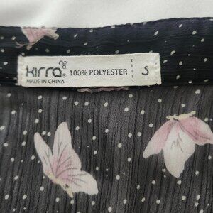KIRRA SHEER BLACK AND PINK TOP. Sheer. Goes great over a camisole. Sheer black with pink butterflies and small polka-dots. Size Small